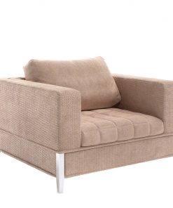 Кресло в мягкой обивке. Сиденье декорировано стёганой прошивкой. Ножки выполнены из металла. Наполнение: пенополиуретан. Возможны другие варианты отделки и обивки