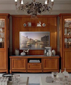 Витрина с 1 стеклянной распашной дверцей с декором. Зеркальная задняя стенка. Возможные варианты отделки — белый и вишня. Возможны другие варианты ручек, в том числе с кристаллами Swarovski.