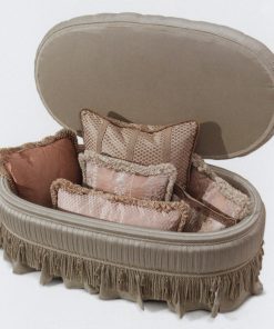 Овальный пуф с контейнером и мягким сидением, обитым в технике капитоне. Возможны другие варианты обивки
