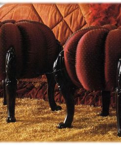 Круглый пуф. Наполнение — полиуретан. Декорирован резьбой. Возможны различные варианты отделки и обивки.