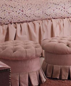 Круглый пуф с ламбрекеном. Наполнение — полиуретан. Возможны другие варианты обивки.