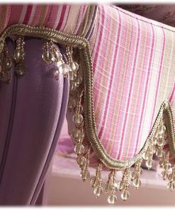 Квадратный пуф с контейнером. Наполнение — полиуретан. Декорирован бахромой. Возможны другие варианты отделки и обивки.
