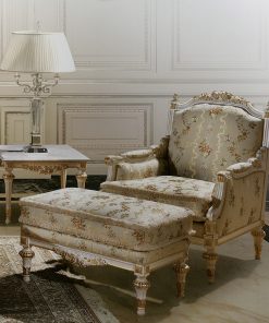Прямоугольный пуф с обитым мягким сидением. Декорирован резьбой. Возможны другие варианты отделки и обивки, в том числе в ткани клиента.