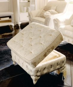 Пуф с контейнером. Наполнение — полиуретан. Возможны другие варианты отделки и обивки.