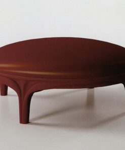 Круглый пуф с обитым сидением. Возможны другие варианты отделки и обивки.