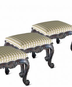 Пуф с обитым сидением. Украшен резьбой. Возможны другие варианты отделки и обивки.