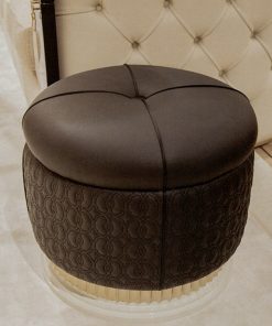 Круглый пуф. Возможны другие варианты отделки и обивки.