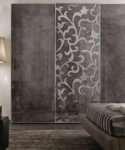 Шкаф с 3 раздвижными дверцами. Центральная дверца украшена металлическим декором. Возможны другие варианты отделки.