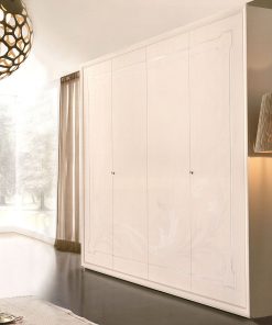 Шкаф с 4-мя распашными дверцами. Стандартное внутренне наполнение шкафа: тумба с 3-мя ящиками, 2 полки и 3 штанги. Возможны другие варианты отделки и размеры шкафа.