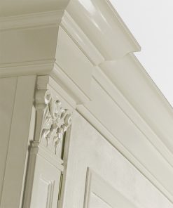 Шкаф с четырьмя распашными дверцами. Декорирован резьбой. Включает в себя внутренний комод, штанги. Возможны другие варианты отделки
