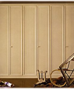 6-ти дверный шкаф. Внутреннее оснащение: 3 полки, 5 штанг, 3 ящика. Возможны другие варианты отделки.