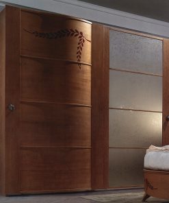 Шкаф с двумя раздвижными дверцами. Декорирован росписью и вставками из стекла. Возможны другие варианты отделки