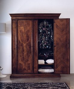 Шкаф. Украшен инкрустацией. Внутреннее оснащение: 6 полок и 2 съемные вешалки для одежды. Возможны другие варианты отделки.