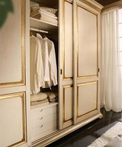 Шкаф с 3-мя раздвижными дверьми. К внутренниму дополнению можно заказать тумбу с 3-мя ящиками. Возможны другие варианты отделки.