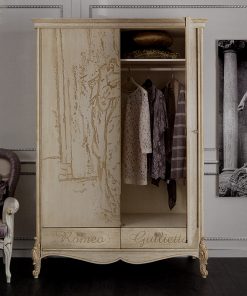 Шкаф с 2 распашными дверцами и 2 выдвижными ящиками. Декорирован резьбой. Возможны другие варианты отделки.