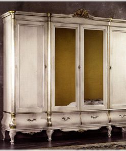 4-х дверный шкаф с 4-мя ящиками, 2 центральные дверцы зеркальные. Декорирован резными элементами. Возможны другие варианты отделки.