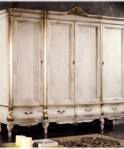 4-х дверный шкаф с 4-мя ящиками. Декорирован резными элементами. Возможны другие варианты отделки.