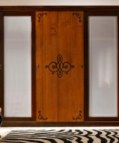 Шкаф с 3-мя раздвижными дверцами. 2 боковые дверцы выолнены из матового стекла. Возможны другие варианты отделки.