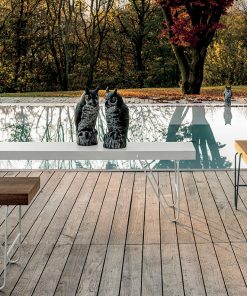 Скамья с деревянным сидением и металлическими ножками. Возможны другие варианты отделки.