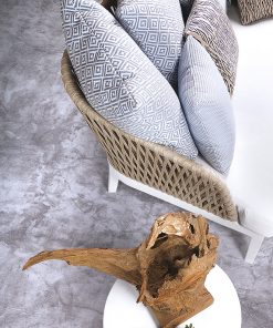 Софа с мягким сиденьем, плетёной спинкой и подлокотниками. Основание выполнено из металла. Возможны другие варианты отделки и обивки