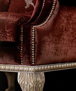 Двухместная софа с резными ножками. Возможны другие варианты отделки и обивки.