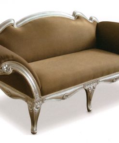 Софа с фигурной спинкой и изогнутыми подлокотниками, декорирована резьбой. Наполнение — полиуретан. Возможны другие варианты обивки