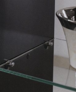 Высокий стеллаж со стеклянными полками. Возможны другие варианты отделки