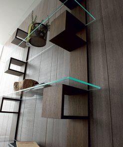Настенный стеллаж с четырьмя стеклянными полками. Возможны другие варианты отделки