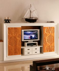 Стенка с книжными полками и 2-мя раздвижными дверцами, которые открывают нишу под TV с 4-мя ящиками. Возможны другие варианты отделки.