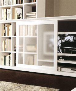 Стенка с нишей под TV и открытыми книжными полками. Ниша с раздвижной стеклянной дверцей. Возможны другие варианты отделки.
