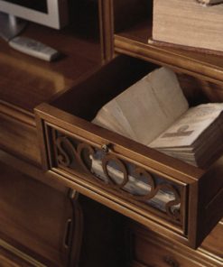 Стенка с тумбой под TV , выдвижными ящиками, открытыми и закрытыми полками. Декорирована резьбой. Возможны другие варианты отделки