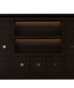 Стенка с двумя шкафами, двумя открытыми полками с подсветкой и тремя распашными дверцами. Ручки и основание выполнены из металла. Шкафы с распашными дверцами оснащены полками. Возможны другие варианты отделки