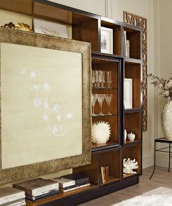 Стенка с раздвижной дверцей, с деревянными и стеклянными полками. Украшена росписью. Возможны другие варианты отделки.
