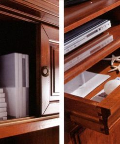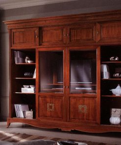 Стенка с нишей под TV и 2-мя раздвижными дверцами, открытыми и закрытыми полками. Возможны другие варианты отделки.