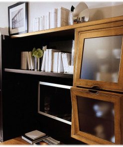 Модульная стенка. В композицию входят: 4-х дверный шкаф, 2-х дверная подвесная витрина, ниша под TV, открытые книжные полки. Возможны другие варианты отделки.