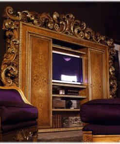 Стенка с полками и нишей для TV, декорированная резьбой. Раздвижные дверцы. Возможны другие варианты отделки