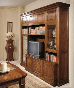 Стенка с открытыми и закрытыми полками, 2-мя витринам и нишей под TV. Возможны другие варианты отделки.