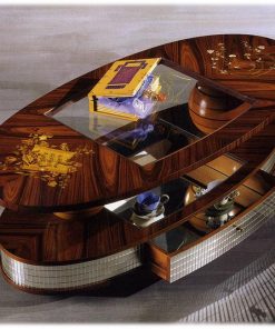 Стол журнальный с выдвижным ящиком. Столешница со стеклянной вставкой. Структура — палисандровое дерево. Столик декорирован мозайкой из кристаллов.