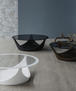 Круглый журнальный столик. Столешница выполнена из стекла. Возможны другие варианты отделки.