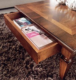 Журнальный стол с одним выдвижным ящиком. Украшен инкрустацией. Возможны другие варианты отделки.