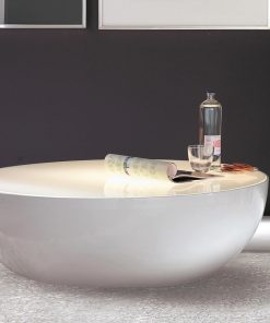 Журнальный стол с круглой стеклянной столешницей. Основание выполнено из металла. Возможен вариант стола с внутренней подсветкой. Возможны другие варианты отделки