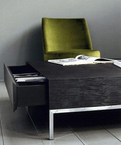 Журнальный стол с выдвижным ящиком. Основание из нержавеющей стали. Возможны другие варианты отделки.