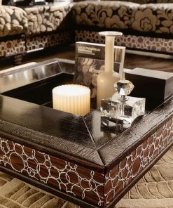 Квадратный журнальный стол, декорирован кожей. Возможны другие варианты отделки.