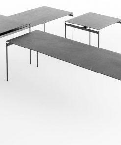 Журнальные столики на металлической основе с керамической столешницей. Столики различаются по размеру и высоте, что позволяет соединять их между собой. Каждый столик можно заказать по отдельности
