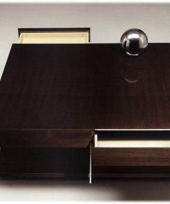 Квадратный журнальный столик с 2-мя полками и 4-мя ящиками. Отделка «Canela Noire».