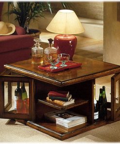 Квадратный журнальный столик с мини-баром и полками. Возможны другие варианты отделки.