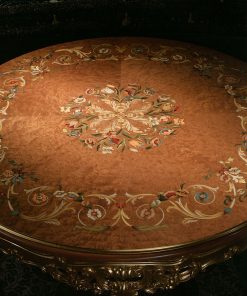 Круглый журнальный стол, декорирован резными элементами ручной работы. Возможны другие варианты отделки.