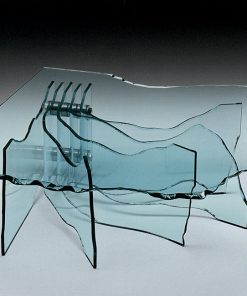 Журнальный столик ручной работы со стеклянной столешницей и 5 стеклянными ножками. Металлические части из нержавеющей стали.
