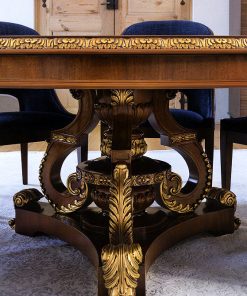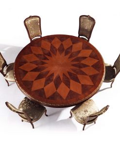 Круглый обеденный стол. Украшен инкрустацией и резьбой. Возможны другие варианты отделки.