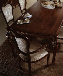 Прямоугольный обеденный стол. Декорирован инкрустацией и резьбой.